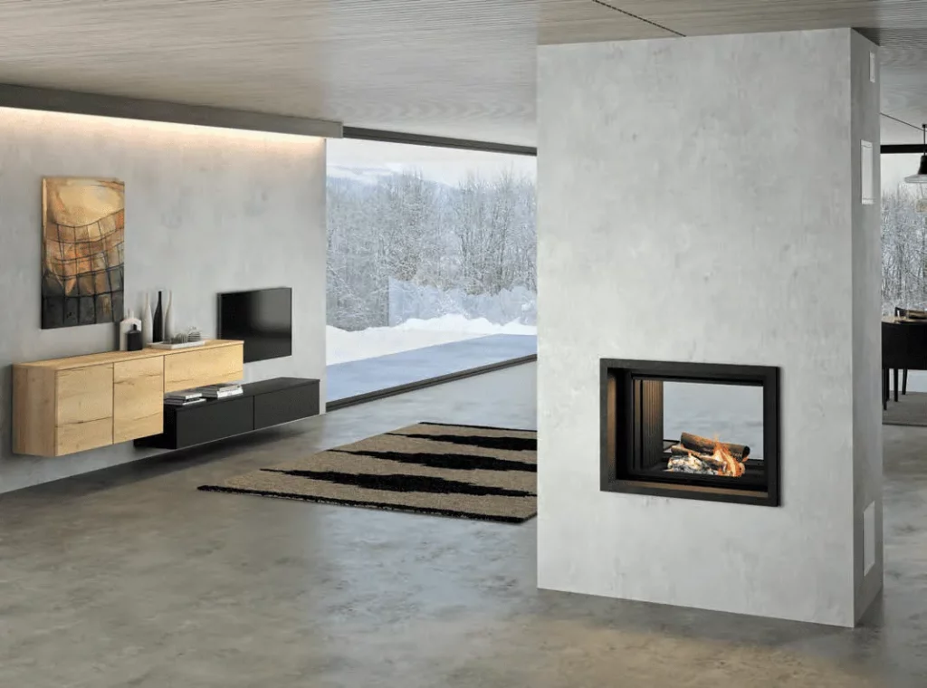 Description :Cadre en granit blacki anciento.Ce foyer double face vous offre une vision profonde de votre pièce à vivre.